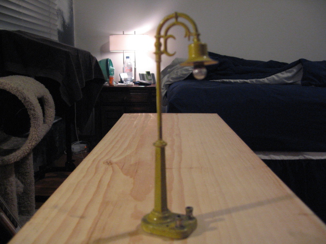 I got this nice addition off of ebay. It really looks nice in my freight yard. As you can see, my cat likes it too! I think it's really cool how the blinking light works. For those of you who don't know, there's a metal coil hooked up to the light. Electricity passing through the coil causes it to heat up. When it heats up enough, the connection to the light bulb is cut off. Then it cools off just enough and the connection is made again. The result is a tower light that blinks about every 4 seconds or so. There are several other old Lionel accessories (and probably some new too) that work in this way.